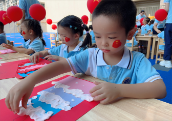 孩子们用自己的手,为即将到来的节日绘画天安门、生日蛋糕、灯笼等。为祖国添上色彩,庆祝国庆节的到来。饱含着他们质朴而浓厚的感情,凝聚着他们对祖国妈妈深深的爱和美好的祝福。